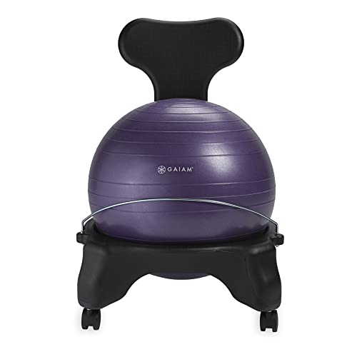 Gaiam Classic Backless Balance Ball Chair – Exercise Stability Yoga Ball Premium Ergonomic Chair for Home and Office Desk with Air Pump, Exercise Guide and Satisfaction Guarantee, Purple